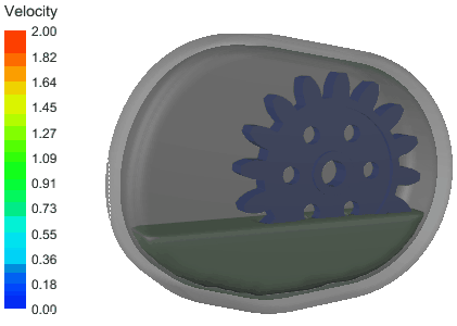 下面以一个齿轮润滑的案例来演示这软件的使用流程。这是一个齿轮携油案例,结果如下图所示。