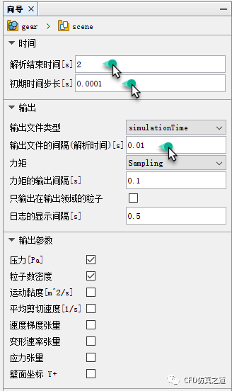 设置结束时间为2 s,设置时间步长为0.0001 s,设置文件输出间隔为0.01 s