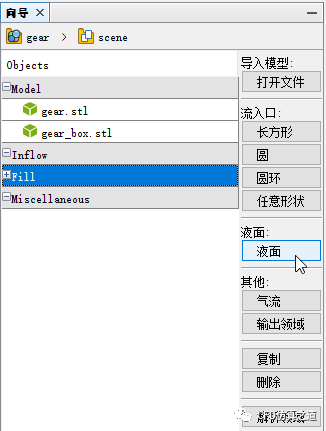 选中向导中的Fill节点,点击右侧按钮液面