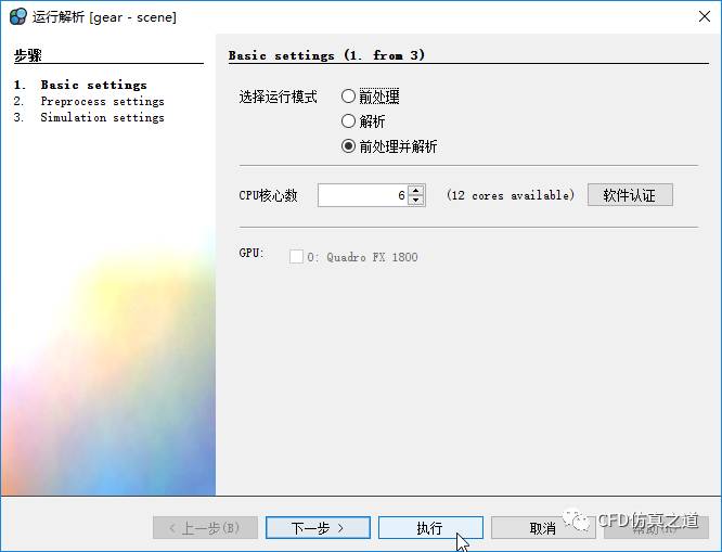 设置运行模式为前处理并解析,设置cpu数量