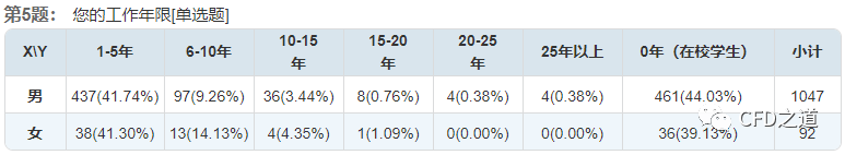 将性别和工作年限合在一起查看的话,数据是这样的: