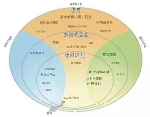 图10 以用户为中心的设计活动 - 可无缝应用于任何级别的敏捷开发方法论 (Limina Application Office, 2012)