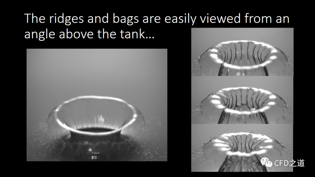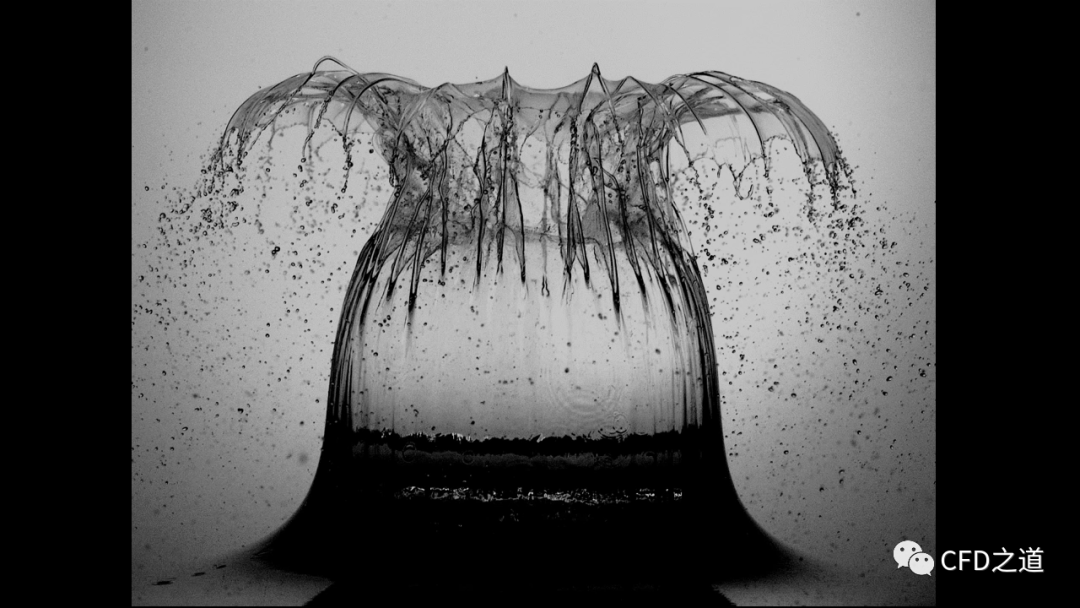 这段视频介绍了最近对这种现象的一种特殊不稳定性的观察,这种不稳定性发生在液体表面飞溅物闭合之前,称之为“屈曲不稳定性”,即沿飞溅壁形成离散脊,其形式类似于硬糖果包装。