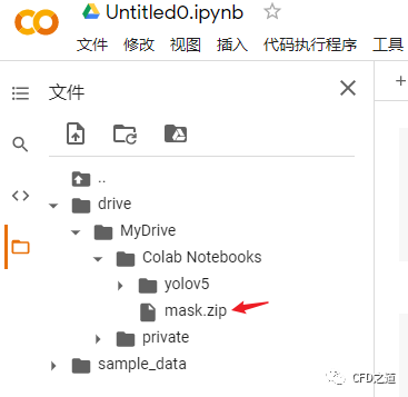 下载完毕后将压缩文件上传到谷歌网盘,我这里将压缩文件改名为mask.zip,如下图所示