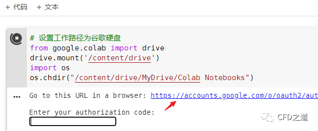 运行时会出现下面的提示信息,此时点击蓝色的链接登录到谷歌硬盘