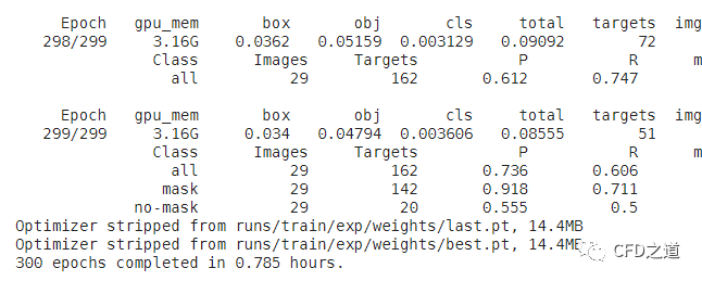 !python train.py --img 640 --batch 16 --epochs 300 --data ../mask/data.yaml --cfg models/yolov5s.yaml --weights ''