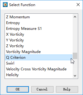 选择Select…按钮,在弹出的列表框中选择Q Criterion,点击OK按钮返回至Calculate对话框