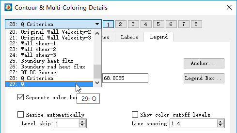点击Plot面板中Contours右侧的Details…按钮,在弹出的对话框中选择变量Q Criterion,点击Close按钮