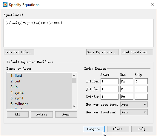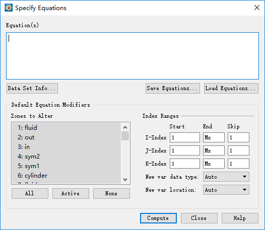 点击Close按钮关闭变量信息对话框并返回至Specify Equations对话框