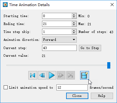 点击动画按钮右侧的Details…按钮弹出Time Animation Details对话框进行动画设置