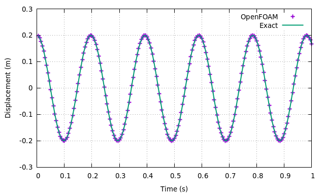 plot 'log' u 1:2 w p lw 2 t "OpenFOAM", f(x) w l lw 2 t "Exact"