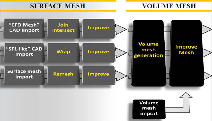 Fluent Meshing可以导入CAD几何,也可以导入STL刻面几何,也可以导入面网格,之后Fluent Meshing可以对导入的模型进行面网格重构,在拥有高质量面网格基础上产生体网格。