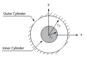 本案例研究两个同心圆柱体之间的层流流动。几何如图所示。内筒以恒定速度旋转带动流体运动,外筒保持静止。本案例可以采用二维几何建模。