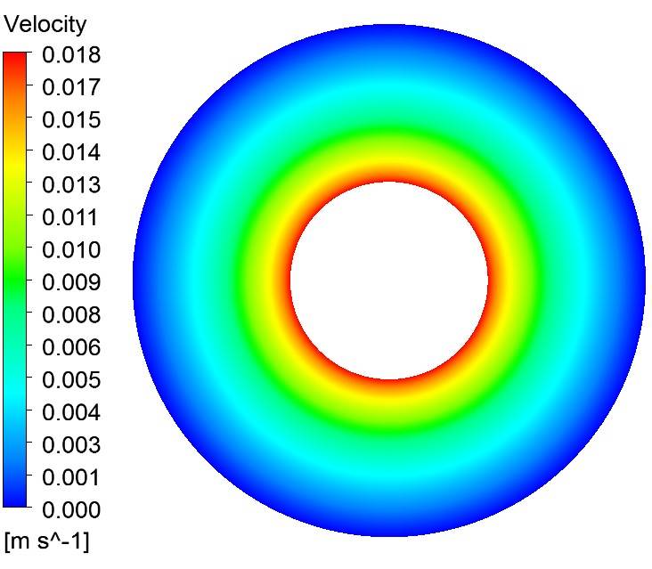 速度云图与预想一致,内圆柱壁面位置速度最大,外圈速度为零。
