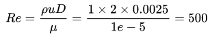管道半径0.00125m,长度0.1m,内部介质密度1 kg/m3,粘度1e-5 kg/m-s。管内入口流动为充分发展层流,平均速度为2 m/s。
