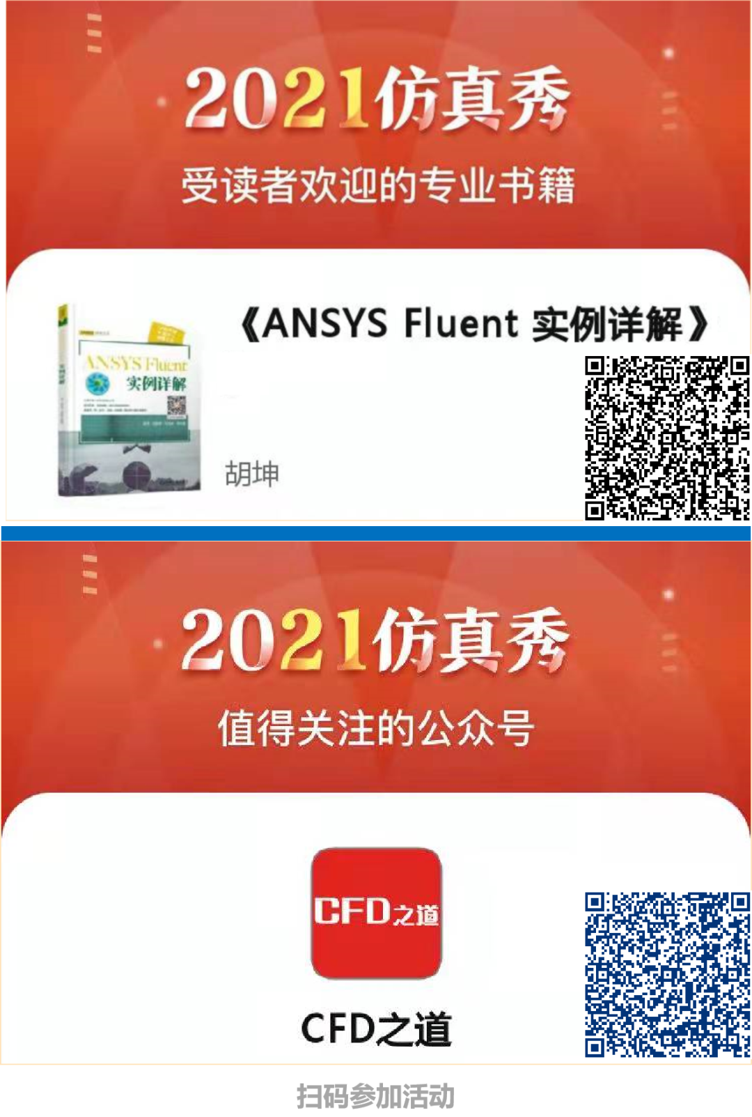 今天正式放寒假了,持续时间一个月,噢耶! 寒假期间需要陪神兽玩耍,抽空还要写本子,最主要的是寒假期间找不到理由熬夜了,所以公众号推文放缓,可能偶尔会发点口水文和广告,春节后恢复正常。 识别下方二维码参加投票抽奖活动,书和公众号每个都可以投5票。拜托道友们投一下上面的那个二维码,再不卷一下就要掉出前10了,拜托!我想着要是有10000个道友每人投5票,他们会不会说我开挂?哇咔咔咔! 本篇文章来源于微信公众号: CFD之道