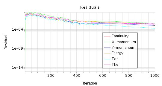 按照STAR CCM+实例文档中的步骤设置完毕进行计算,残差曲线如下图所示 。