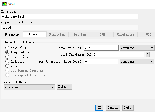 切换至Thermal标签页,设置Thermal Conditions为Temperature,并设置Temperature为293 K,其他参数保持默认设置,点击OK按钮关闭对话框