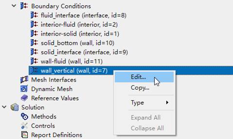 右键选择模型树节点Boundary Conditions > wall_vertical,点击弹出菜单Edit…打开边界条件设置对话框
