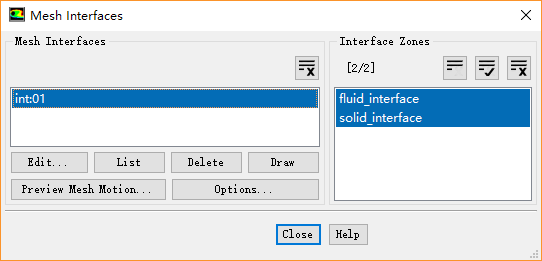 双击模型树节点Mesh Interface,弹出交界面定义对话框