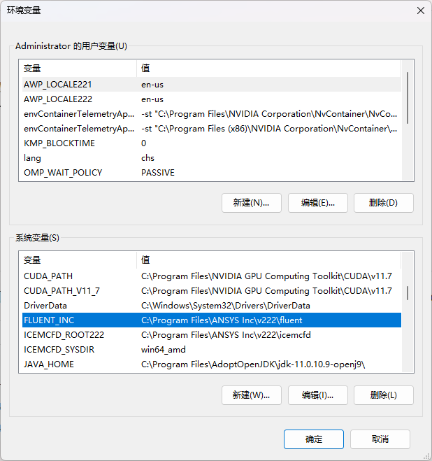添加系统环境变量 FLUENT_INC。如下图所示。