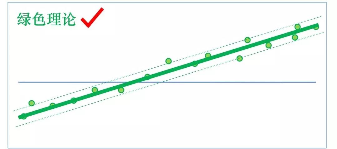 很久以前,数据的误差很大,就是这么乱七八糟的蓝色数据点。学者从中提出了蓝色理论,大家觉得蓝色理论不准,只能凑合着用。