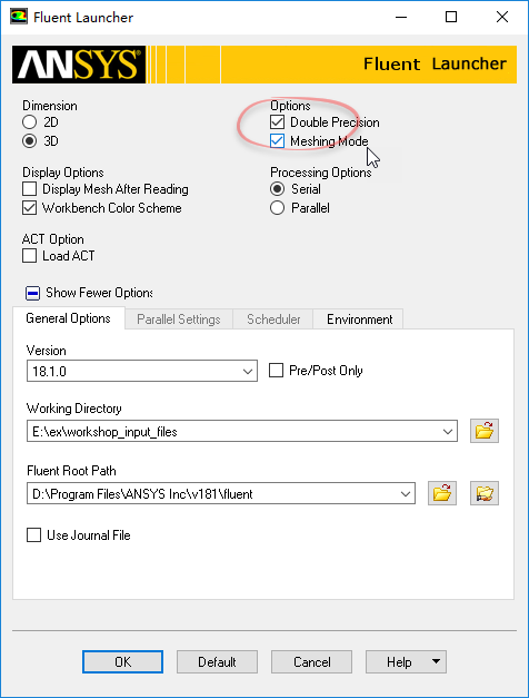 在Fluent启动界面中,激活选项Meshing Mode后即可进入Fluent Meshing工作界面。不过要注意Fluent Meshing只能工作在3D模式下。