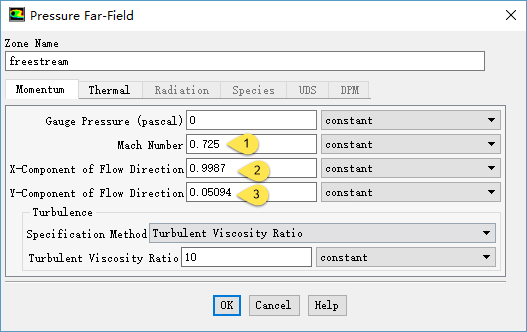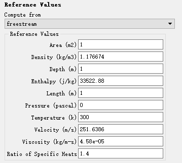 选择而从 freestream 进行初始化后,软件自动进行参数设定,不过还是需要仔细检查一些选项,如密度、速度、粘度、压力等。