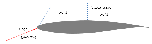 自由来流马赫数为 0.725 ,攻角 2.92 °,雷诺数 6.5e6 。案例中,自由来流为跨音速,翼型表面局部达到超音速,通过激波面后回到亚音速。计算过程中监测升力系数及阻力系数,计算结束对翼型表面的压力系数与实验数据进行比较。