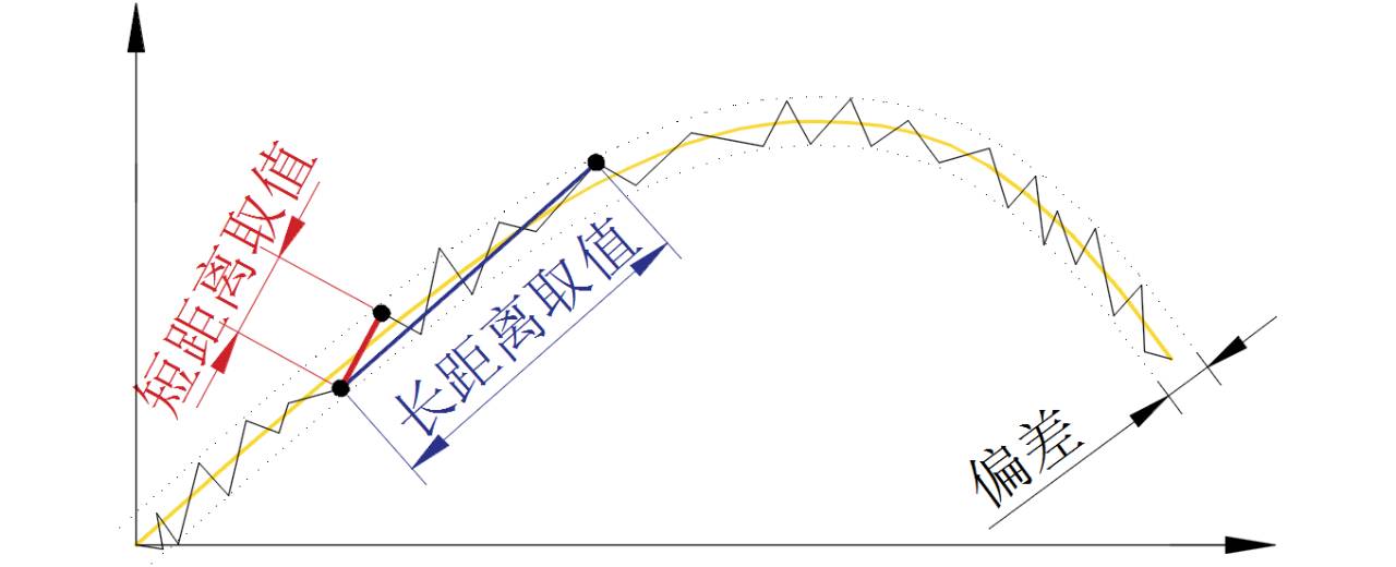 我们做仿真,往往需要沿着一条曲线求出斜率。有人为了求得“准确”的斜率,将计算的X间隔缩得很小,认为间隔越小,数据的精度越高。岂不知短距离取值,变化量与偏差在一个量级,当地的变化量已经被当地的偏差淹没,得到的当地斜率反而失真。不如长距离取值,好像数据间隔大品质不好了,数据反而更能够反映真实。