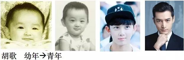 但是现实的胡歌从幼年、童年、少年到青年,从小长到大,哪有什么缩比规律。假如你愣是从幼儿胡歌的脸上找到一个影星的痕迹。我给你一个婴儿,你能根据胡歌的规律,判断这个婴儿的未来吗?