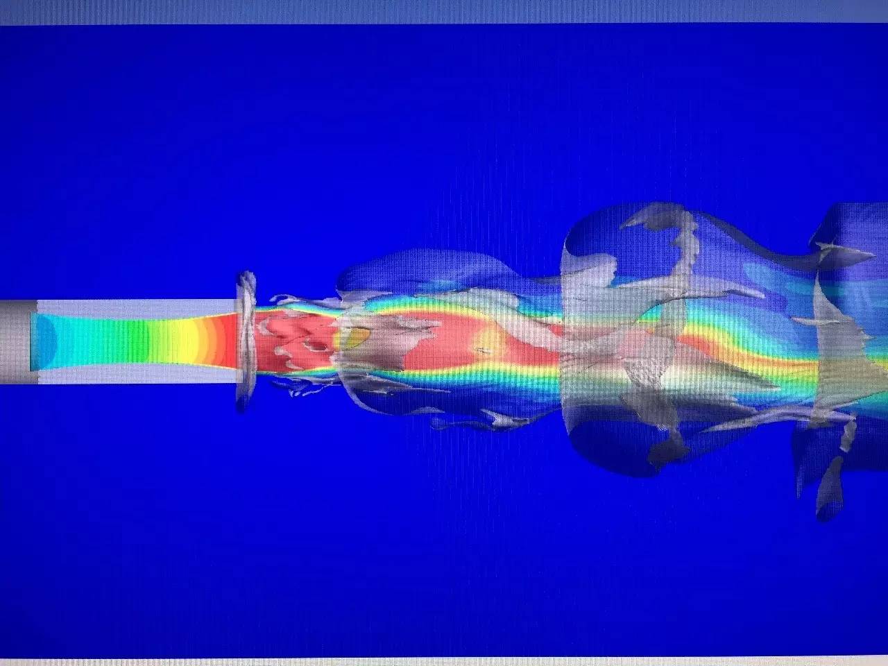 气体与水的相对运动,水的粘性更大,高速气流射入静止的水中,射流与水的掺混界面快速卷曲、扩大,射流很快与水混为一体,将前进的速度化为混乱的骚动,这就是粘性的力量。