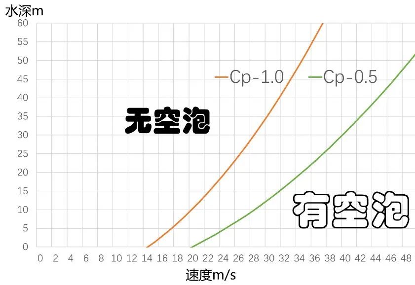 用最普通的方法计算出水中物体壁面的Cp分布,用本文的办法就可以预计物体的某个位置,在什么速度、水深会产生空泡,画出临界线。