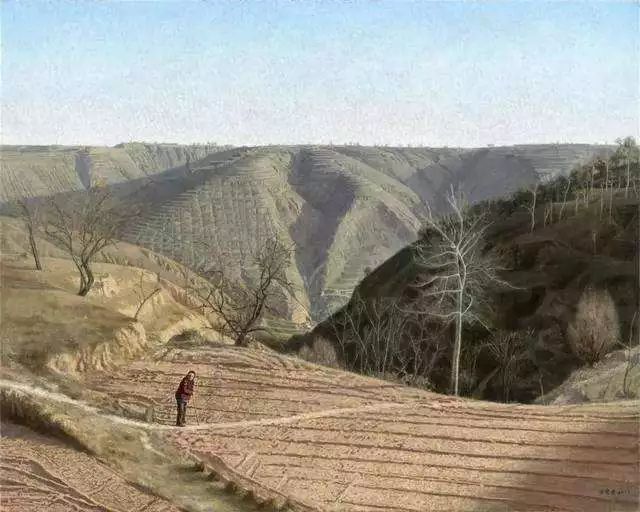 《黄土高原•母亲》仝紫云画了三个星期。每天下午,在同一个位置,对着同一个风景,画了一遍又一遍。你以为他是因为画得不像,在反复练习吗?不对,他在悄悄地篡改真实。
