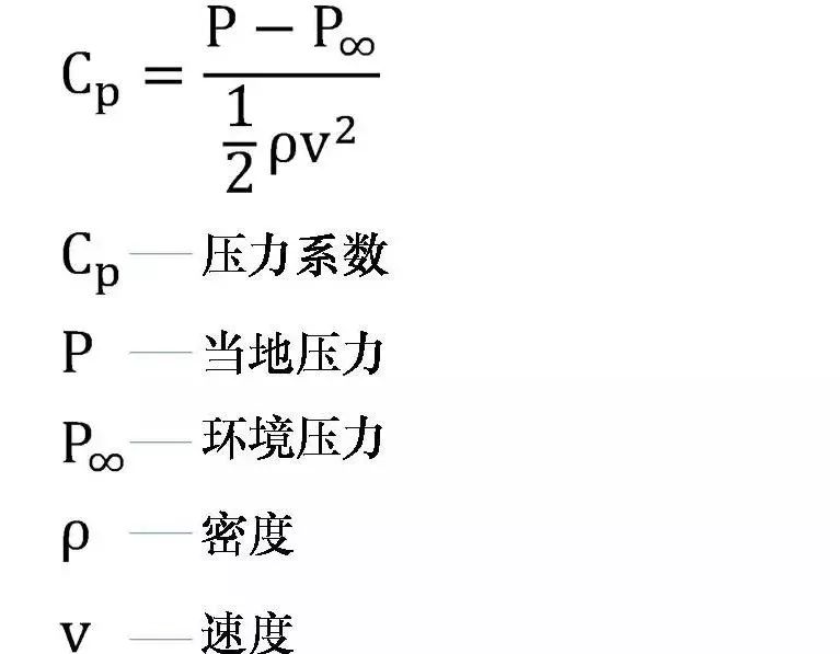 压力系数Cp是减去环境压力、除去密度、除去速度影响的无量纲参数。
