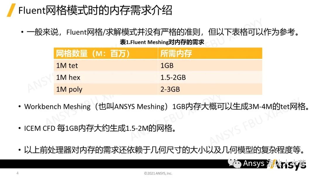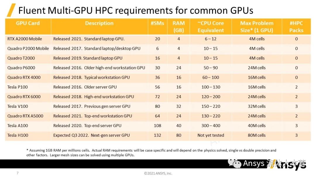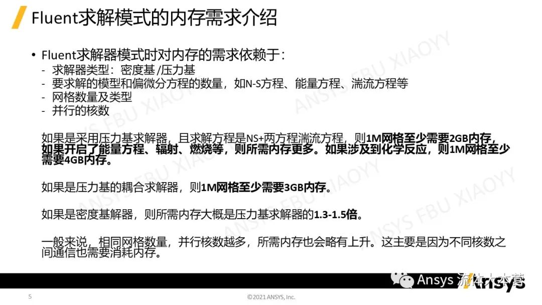 作者收集了一般性情况下Fluent在不同模式以及功能下对内存、显存等硬件的需求,用作参考。