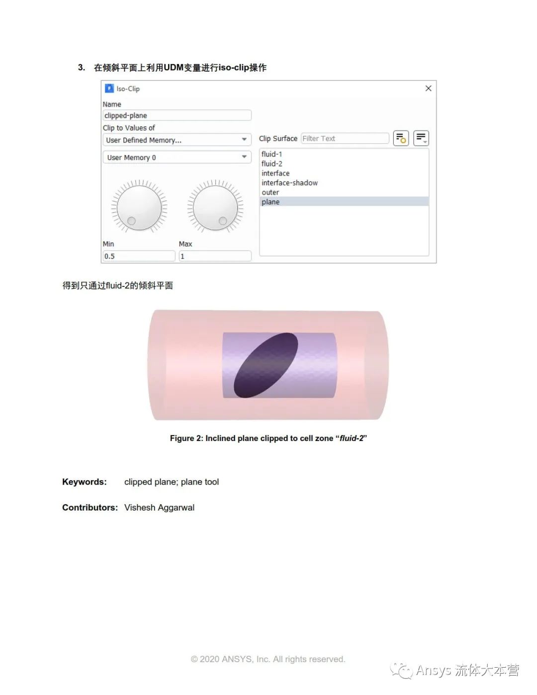 然后对于不与笛卡尔坐标平行的平面,也即倾斜平面,如何在fluent后处理中创建只穿过特定计算域的倾斜平面,目前平面工具并无直接的方法。
