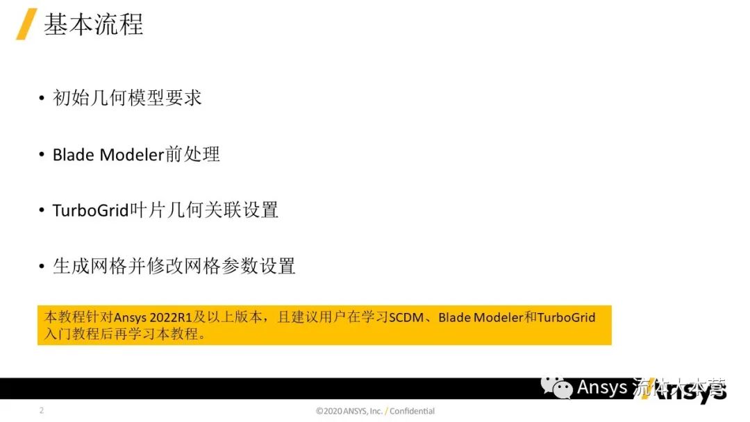 需要注意的是:本教程针对Ansys 2022R1及以上版本,且建议用户在学习SCDM、Blade Modeler和TurboGrid入门教程后再学习。