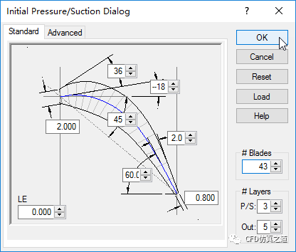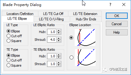 切换至LE/TE Ellipse标签页,按下图所示参数进行设置