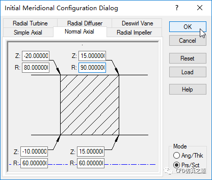 在弹出的对话框中,选择Normal Axial,并按如下图所示设置参数,点击OK按钮输入参数