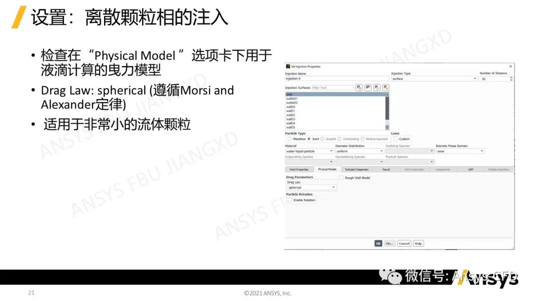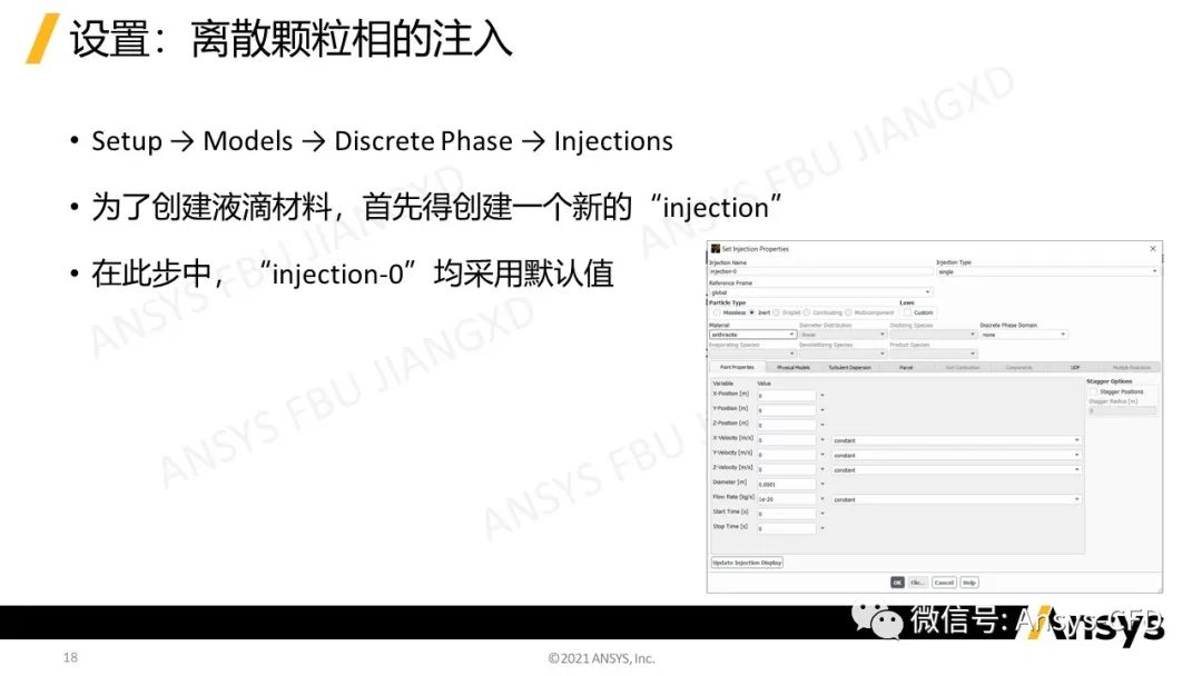 Ø采用DPM模型注入液滴颗粒
