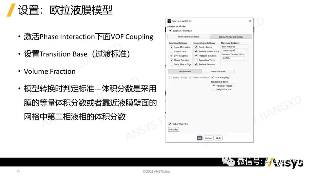 Ø采用EWF<>VOF模型转化工具激活液膜求解过程中两种模型的转化