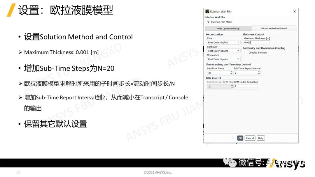 •液滴撞击壁面时可能会累积成薄薄的液膜,液膜的累积逐渐明显,液膜的厚度可能会超过规定的上限,这将违反欧拉液膜模型[EWF]的假设,因此可能参数非物理的结果