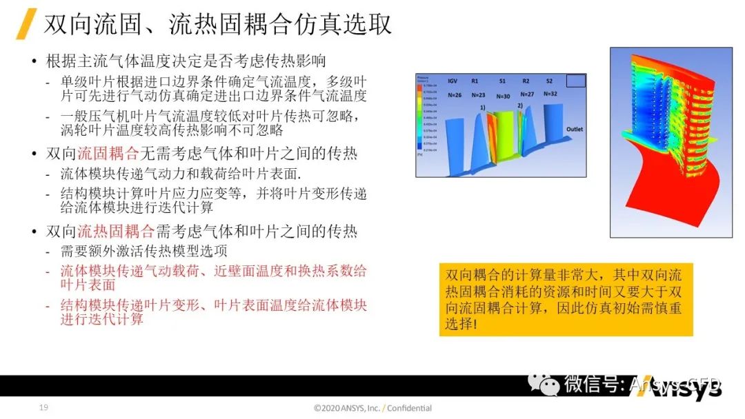•基于Ansys双向流热固耦合方案,可实现对叶片振动和热变形等的预测: