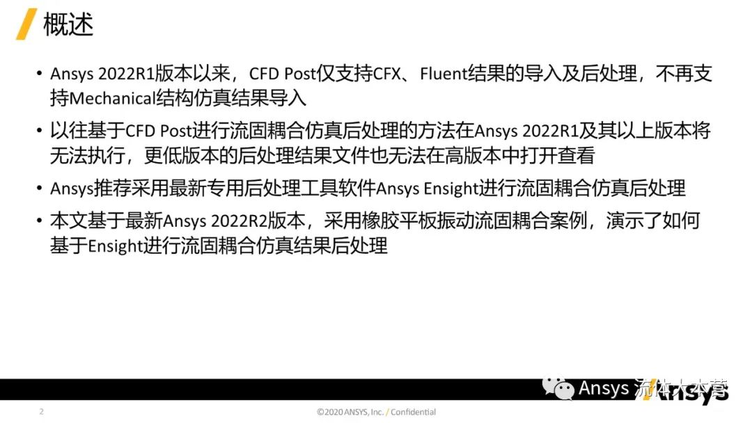 Ansys 2022R1版本以来,CFD Post仅支持CFX、Fluent结果的导入及后处理,不再支持Mechanical结构仿真结果导入