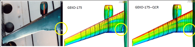 最新添加的GEKO湍流模型由Ansys 湍流模型专家Florian Mentor研发,允许用户根据需要调整控制参数以定制适合自身问题的湍流模型。用户可对射流系数、近壁面系数、分离系数和混合系数进行调整,以修正不同位置处的流速分布、近壁面边界层内的剪切应力、换热系数和气流分离点的位置,进而对叶片气动性能产生影响