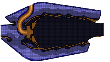 相比于之前的方法,对复杂结构的燃烧室模型使用Mosaic网格使得航空发动机用户在网格划分时间压缩约20倍,同时求解时间压缩30-50%。