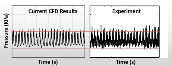 按照上述5个方面进行燃烧室网格划分,可以得到数量少、质量高的计算网格,这是燃烧室仿真结果准确的重要前提。为做验证,本文还使用Ansys Fluent Meshing对文献【1】中燃烧室进行了网格划分,并使用Fluent对其进行了热声振荡仿真。此燃烧室仿真的难点在于燃烧振荡问题的准确模拟,需要在具体技术层面如网格划分、湍流模型、求解器等进行相关设置。通过对仿真结果的分析,发现使用Fluent计算得到的燃烧室仿真压力波动及功率谱密度均与试验结果吻合较好。