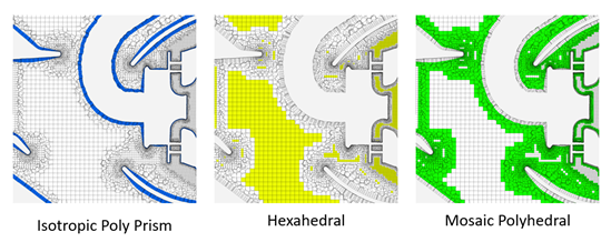 Mosaic技术可用多面体网格连接不同类型的网格,它是六面体网格、多面体棱柱网格、多面体网格的结合。