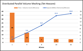 高效并行网格划分方式:Fluent Meshing支持网格并行计算,可极大提升网格效率。用户无需购买额外的HPC即可使用多核并行计算生成Fluent Meshing网格。